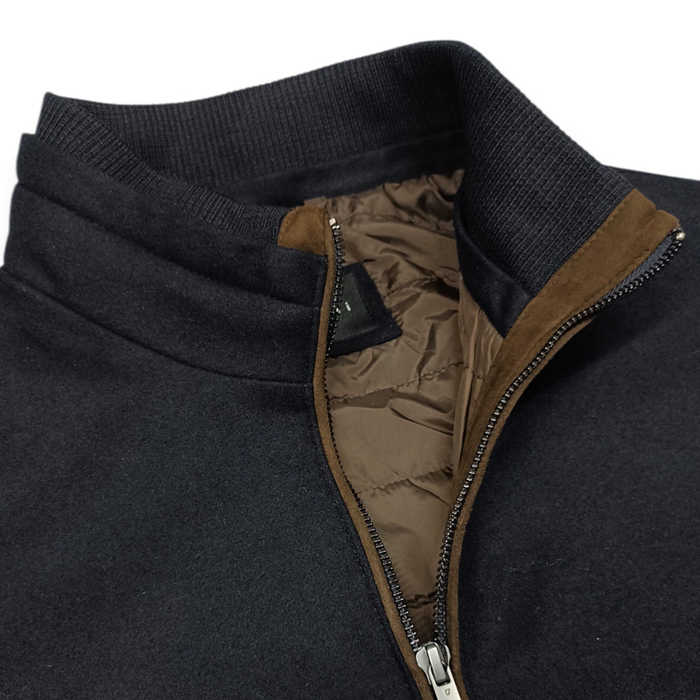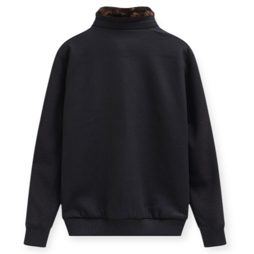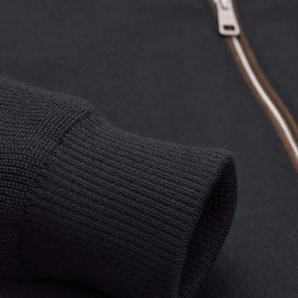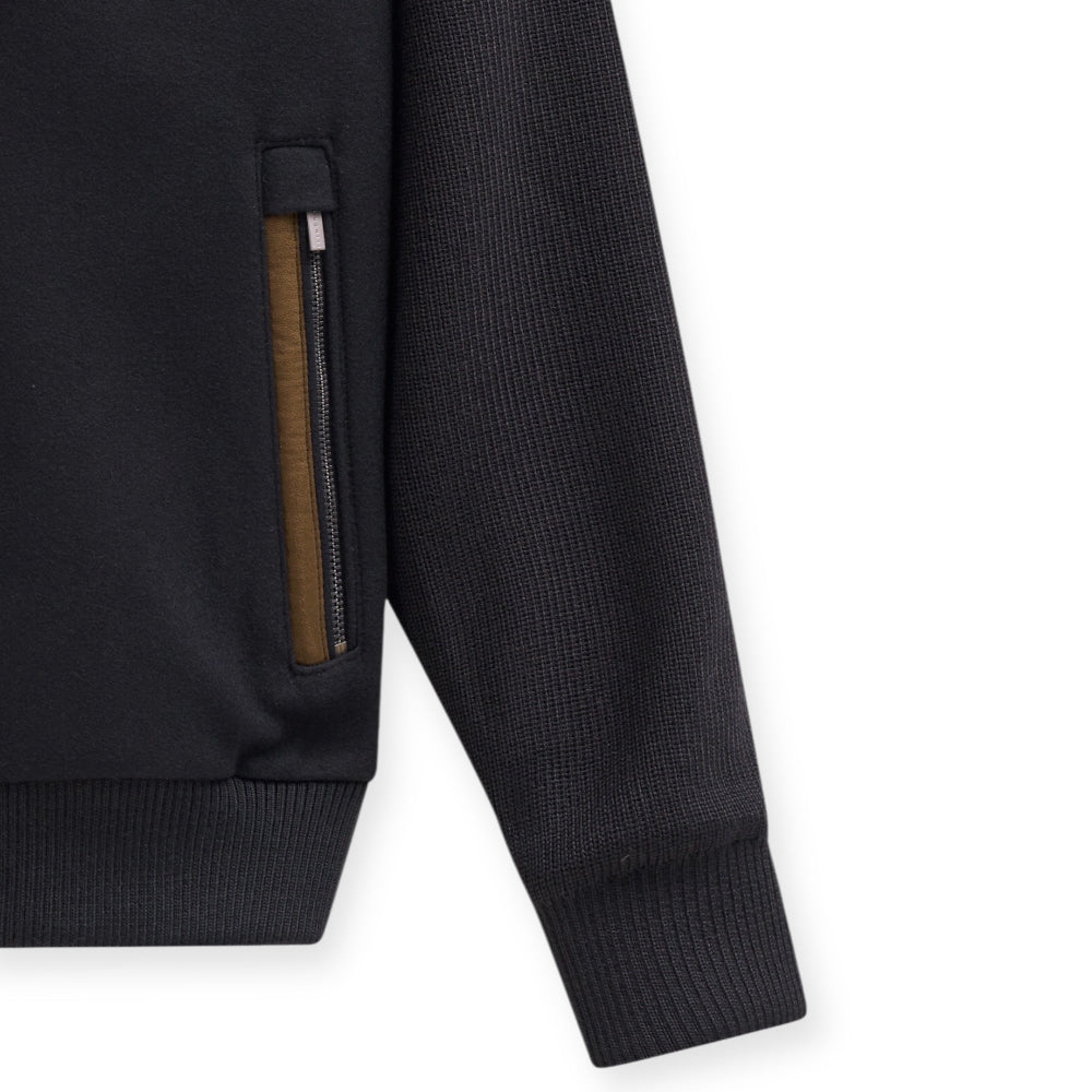 - Ανδρικό μπουφάν σε μπλε και καφέ αποχρώσεις, μάλλινο με πλεκτά μανίκια.