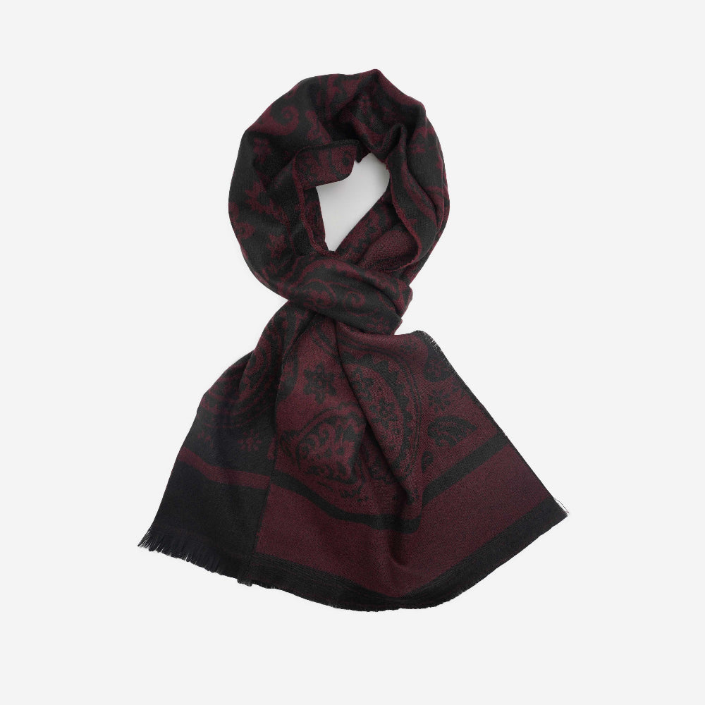 • Ανδρικό κασκόλ του οίκου Stefano&Mario σε μπορντό και μαύρες απόχρωσεις με σχέδια λαχούρ.