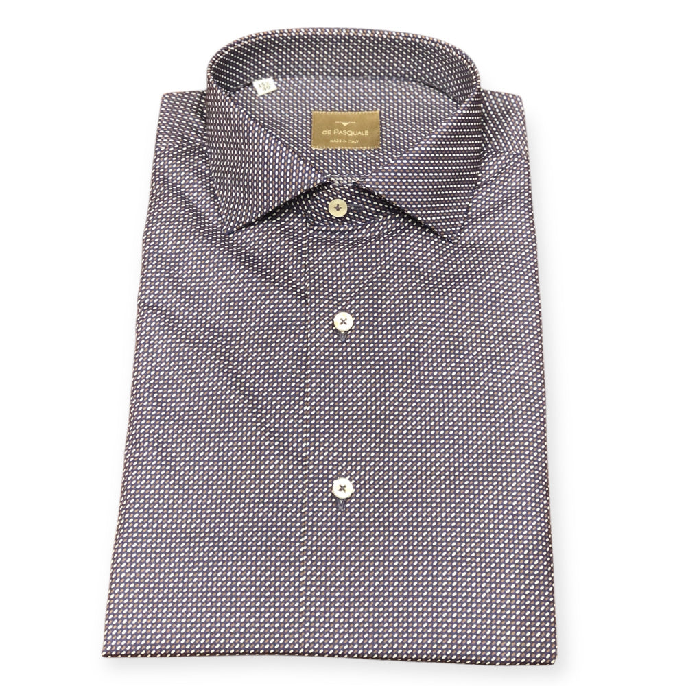 - Πουκάμισο μακρυμάνικο σε μπλε απόχρωση με μικροσχέδιο στην ύφανση.